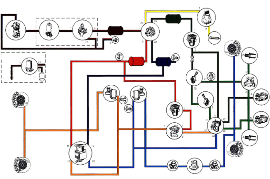 Con l'introduzione del sistema frenante Trailer EBS E la tubazione e il cablaggio del sistema frenante e della sospensione pneumatica del rimorchio sono diventati notevolmente più semplici.